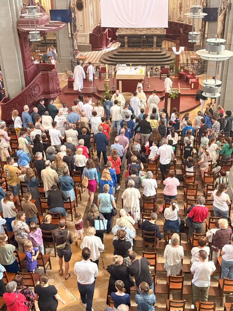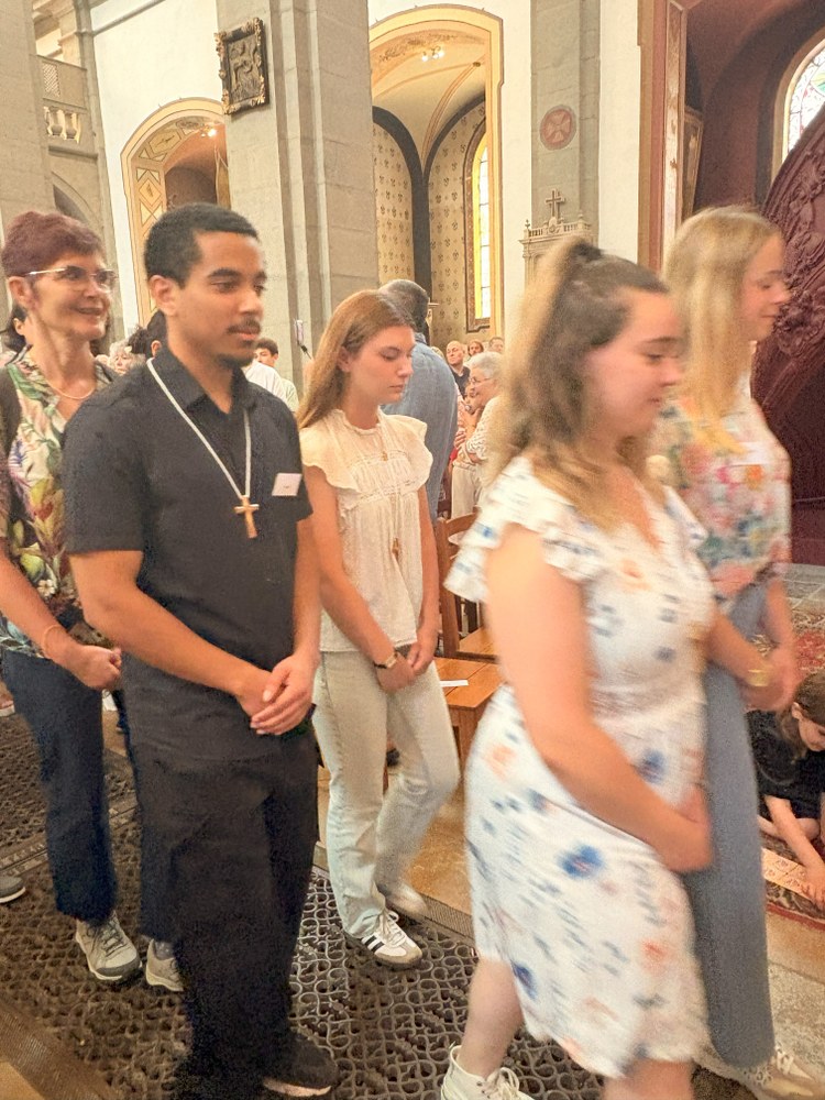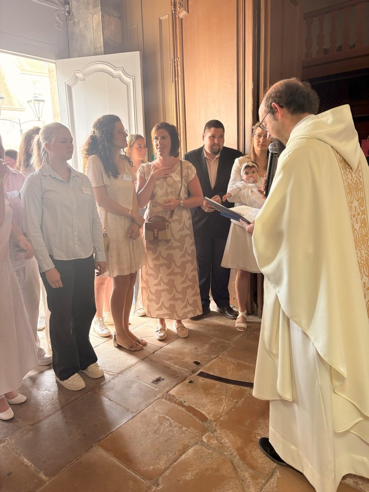Dix jeunes et adultes, âgés de 17 à 35 ans, ont été accueillis à la porte de l'église Saint-Georges pour leur entrée en catéchuménat ainsi que la famille de Manon et Margaux qui présentait leurs petites filles au baptême.
