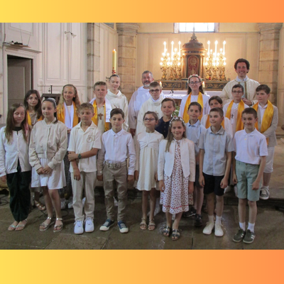 Ces jeunes communiants, et leurs aînés qui professaient solennellement leur foi devant l’assemblée, participent durant l’année scolaire aux séances de catéchisme et à nos rencontres « Tous ensemble avec Jésus-Christ ». Cette année, ils ont pu accomplir une journée de retraite à Filain pour les premiers, et une retraite de profession de foi de trois jours aux Fontenelles, dans le Haut-Doubs, pour les seconds. Ils ont ainsi appris à mieux connaître le Christ, à s’initier au sens de la liturgie, à mieux comprendre les mots de la foi que nous disons chaque dimanche, et à recevoir le sacrement du Pardon.