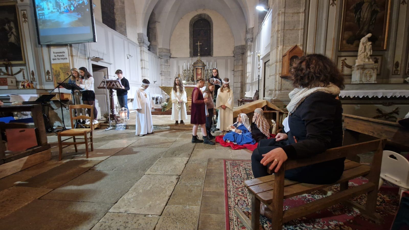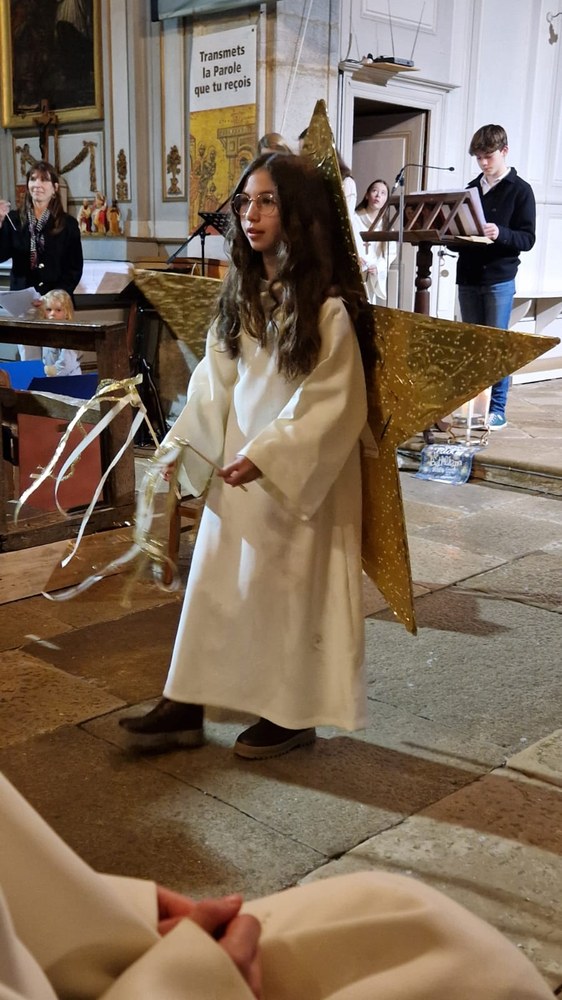 Dans la paroisse Sainte-Anne de Mailley-Vellefaux, nous avons opté pour la représentation de la scènette "l'étoile et les deux enfants", proposée par la revue mensuelle "prions en église", au début de la célébration, qui avait lieu le 24 décembre à 18h30 à l'église de Vellefaux. Cette représentation met en scène, en trois actes, l'enquête menée par Esther et Nathan, deux enfants de Bethléem, sous le regard de l’Étoile, au sujet de la Nativité... Une belle entrée en matière dans le mystère de Noël pour toute la communauté réunie. En voici quelques photos ! (Alexandre Coronel)