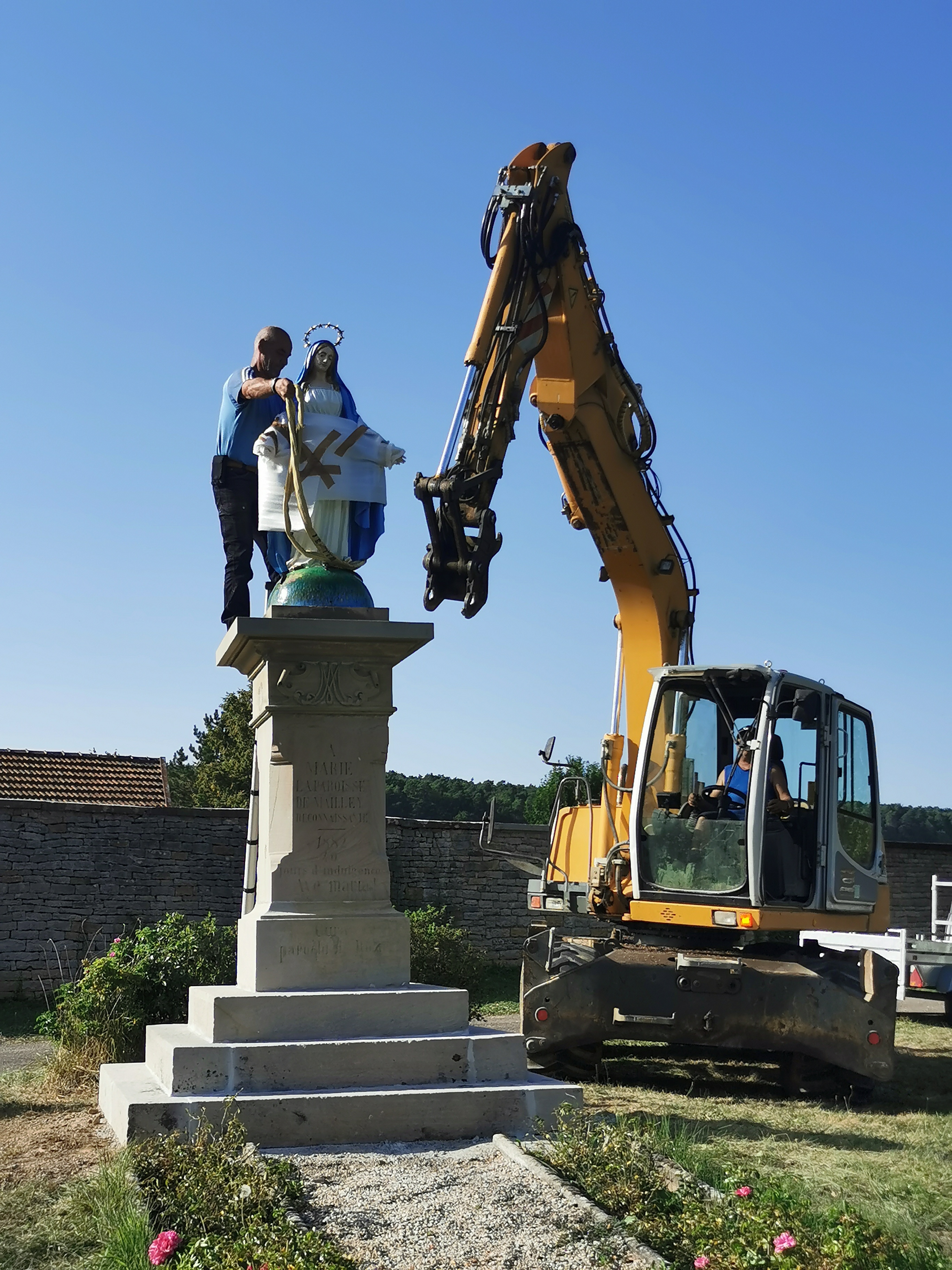 Cet été, des bénévoles ont pris en charge la restauration de la statue de la Vierge qui jouxte le cimetière de Mailley-Chazelot : celle-ci est en fonte aciérée, d’une hauteur d’1,50m pour un poids de 300kg.
