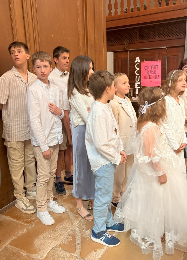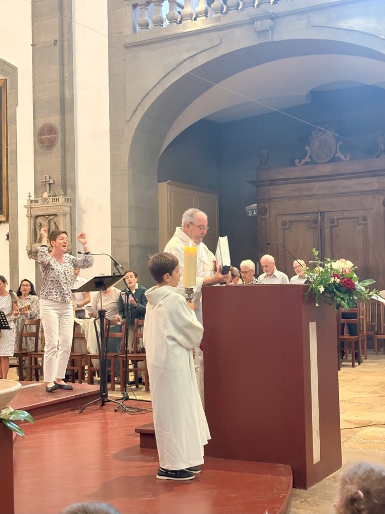 Ce fut également l'occasion pour Françoise Astier, membre de l'Équipe de Coordination Pastorale, de remercier l'ensemble des catéchistes pour l'accompagnement qu'elles assurent auprès des enfants tout au long de l'année de catéchèse, les parents, les prêtres pour leur accompagnement spirituel, la chorale et les animateurs, et tous ceux qui, de près ou de loin, contribuent à la réussite de ces beaux moments en Église.