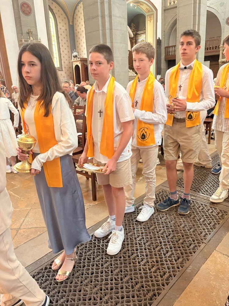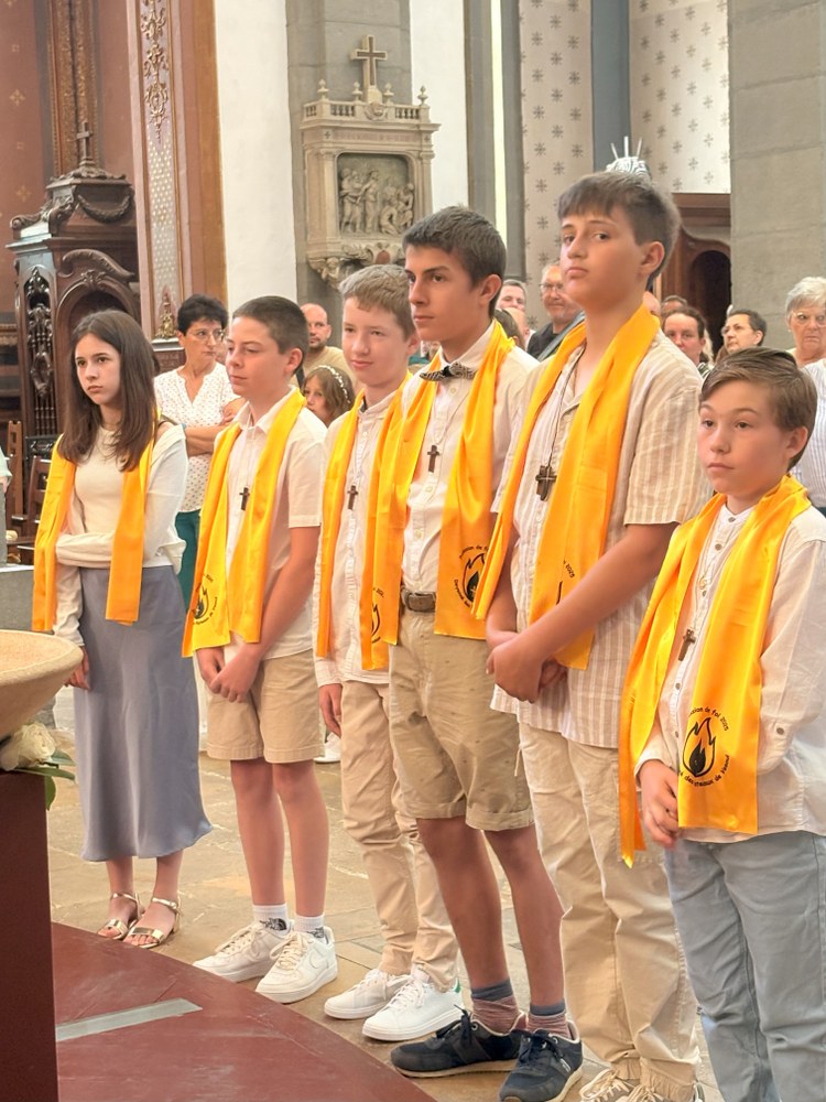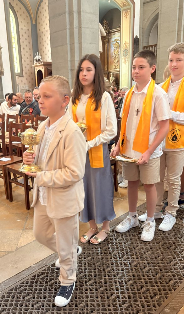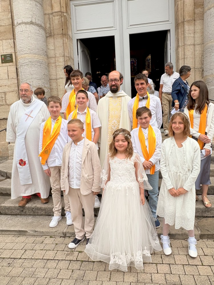 Dimanche 15 juin, c'était en l'église Saint-Georges de Vesoul, la 1ère des communions pour Eléna CANAL, Nino VENDRELY et Madeleine CHUBERT et la Profession de foi pour Léo-Paul FOURÉ, Gabriel MOLINA HERNING, Maxance PIEGELIN, Benjamin THOMAS, Jérémi VAIRON et Gabriela VILLEGAS AVILES.