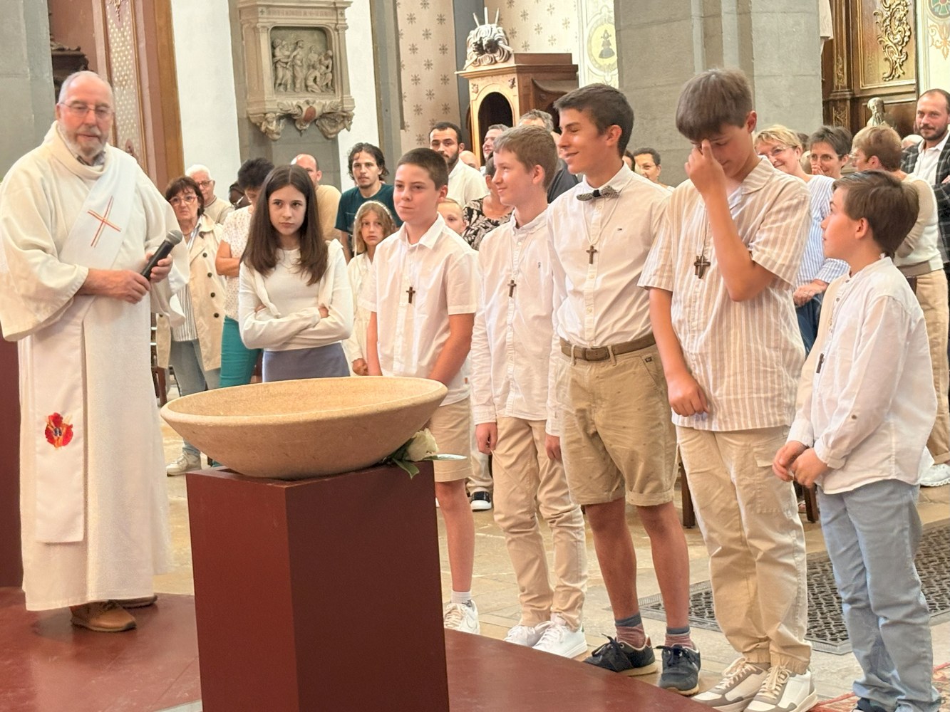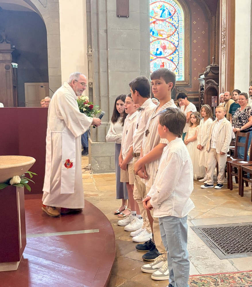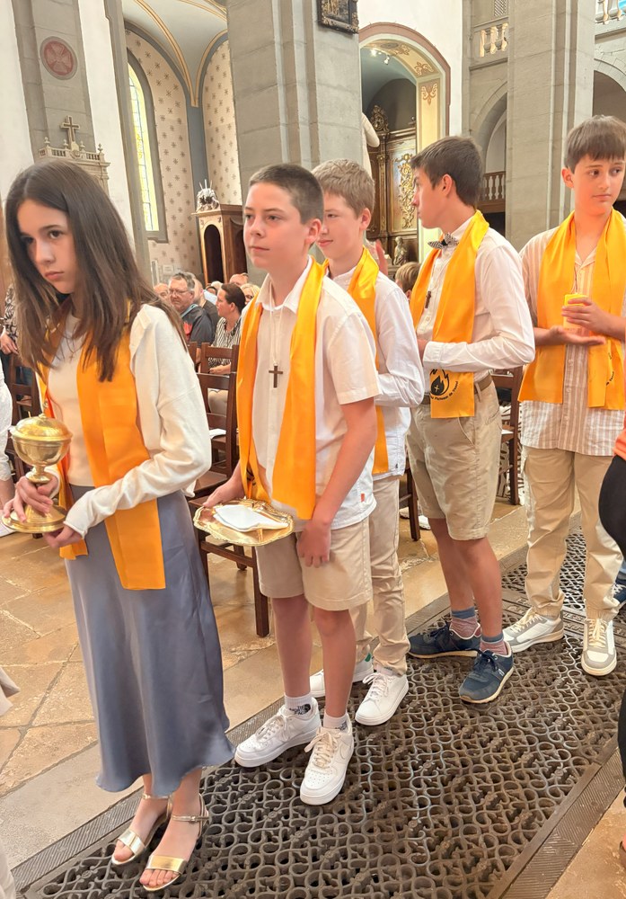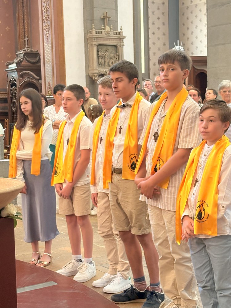 Dimanche 15 juin, c'était en l'église Saint-Georges de Vesoul, la 1ère des communions pour Eléna CANAL, Nino VENDRELY et Madeleine CHUBERT et la Profession de foi pour Léo-Paul FOURÉ, Gabriel MOLINA HERNING, Maxance PIEGELIN, Benjamin THOMAS, Jérémi VAIRON et Gabriela VILLEGAS AVILES.