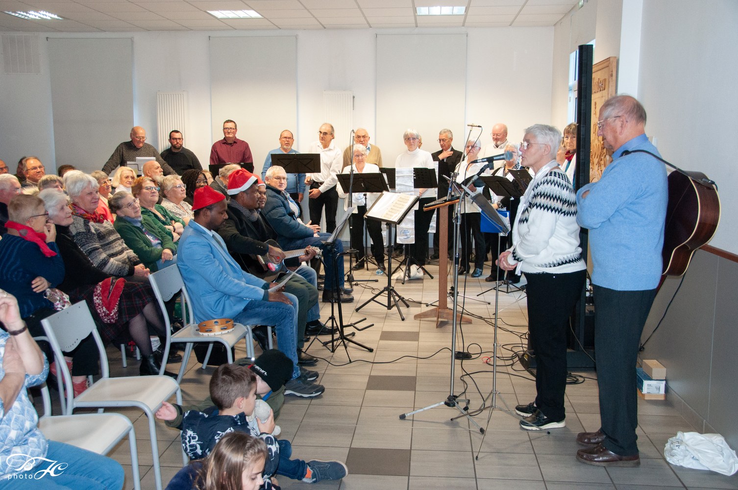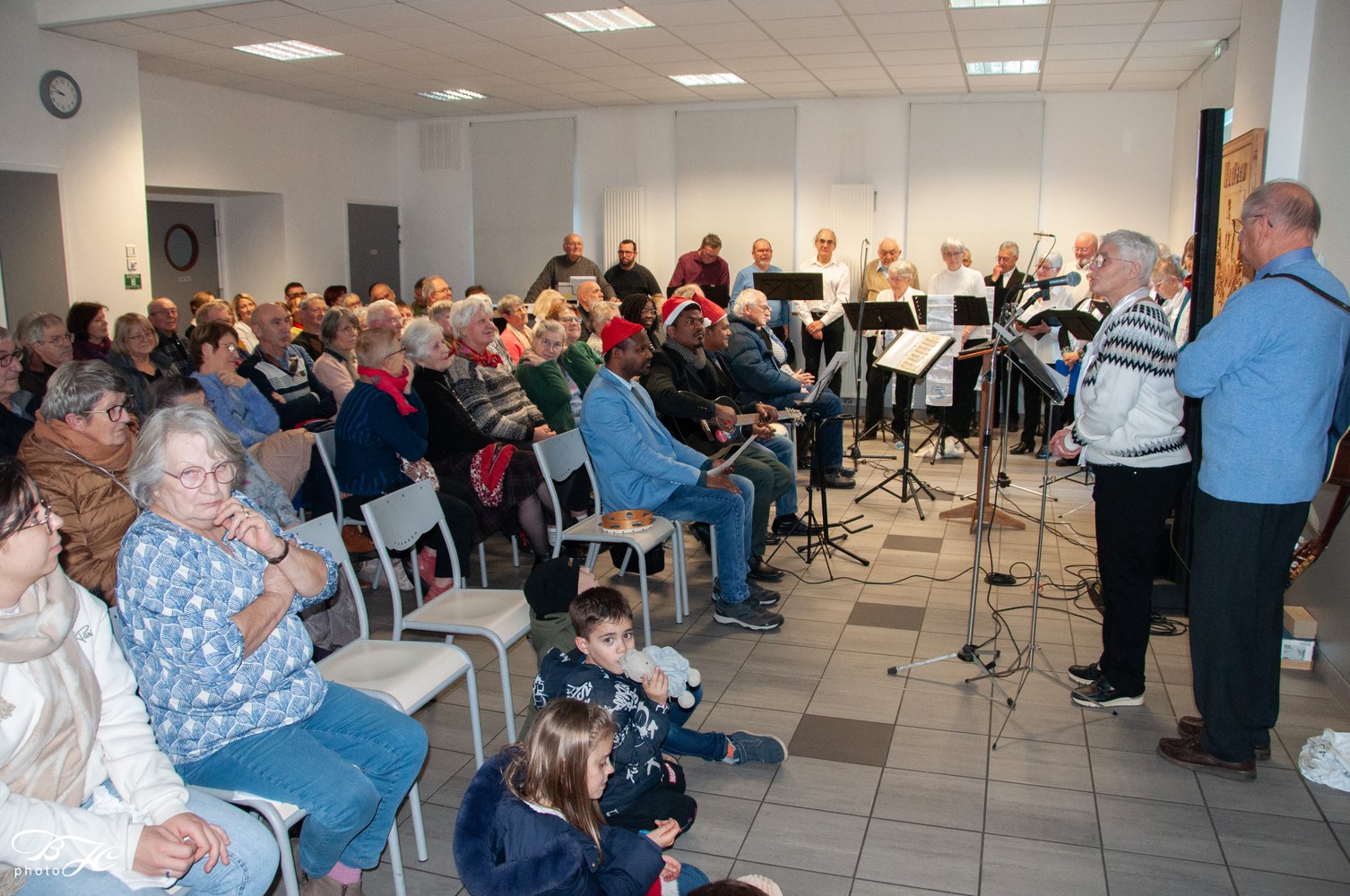 À 15h, le rendez-vous était donné dans la salle communale pour une veillée chantante animée par l'abbé Jean Kita et son équipe ;