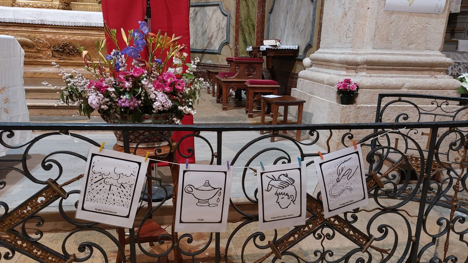 Au retour, une mise en scène dans une salle de caté était interprétée par 6 jeunes pour montrer l’action de l’Esprit Saint agissant sur ses apôtres le jour de la Pentecôte et devait permettre aux jeunes de découvrir qui était ce personnage qu’ils avaient recherché à travers ce jeu de piste.