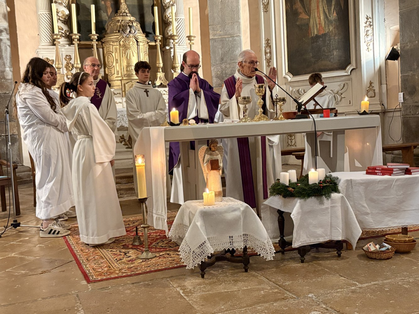 En ce dimanche 30 novembre, premier dimanche de l'Avent, réunis en l'église Saint-Christophe de Rioz, les jeunes de la paroisse Notre-Dame de la Motte - Vesoul ont vécu leur premier temps fort de préparation à la confirmation. Une église bien remplie, une belle célébration présidée par l'abbé Jean-Marie Larue, co-célébrée par l'abbé Pierre Labarre, en présence du diacre André Brunner et animée par le groupe musique du secteur riolais.