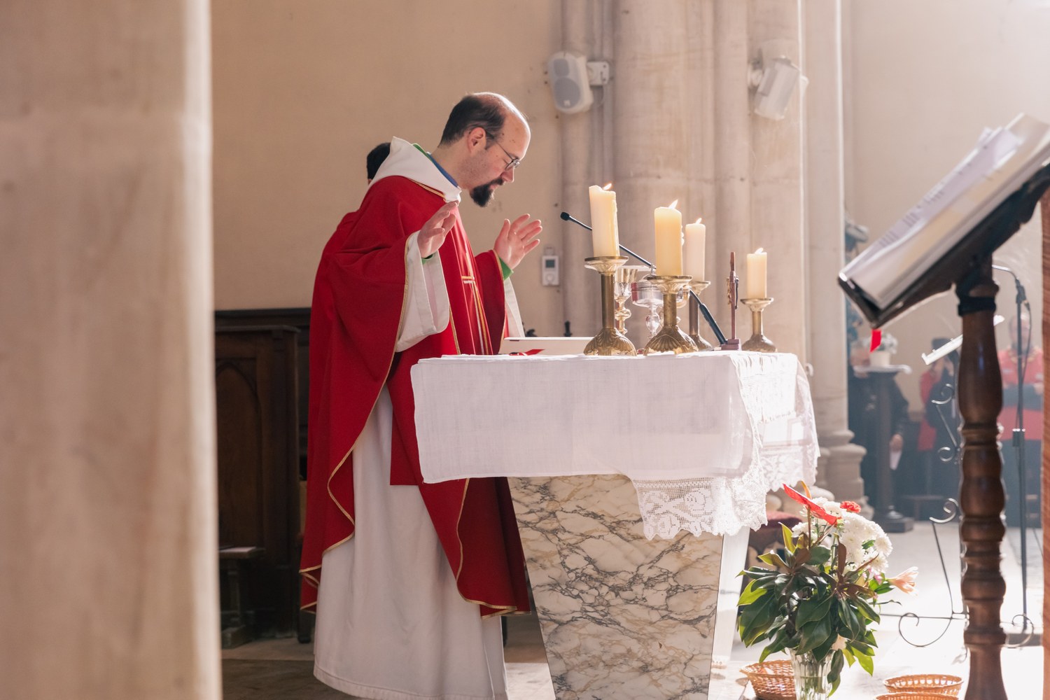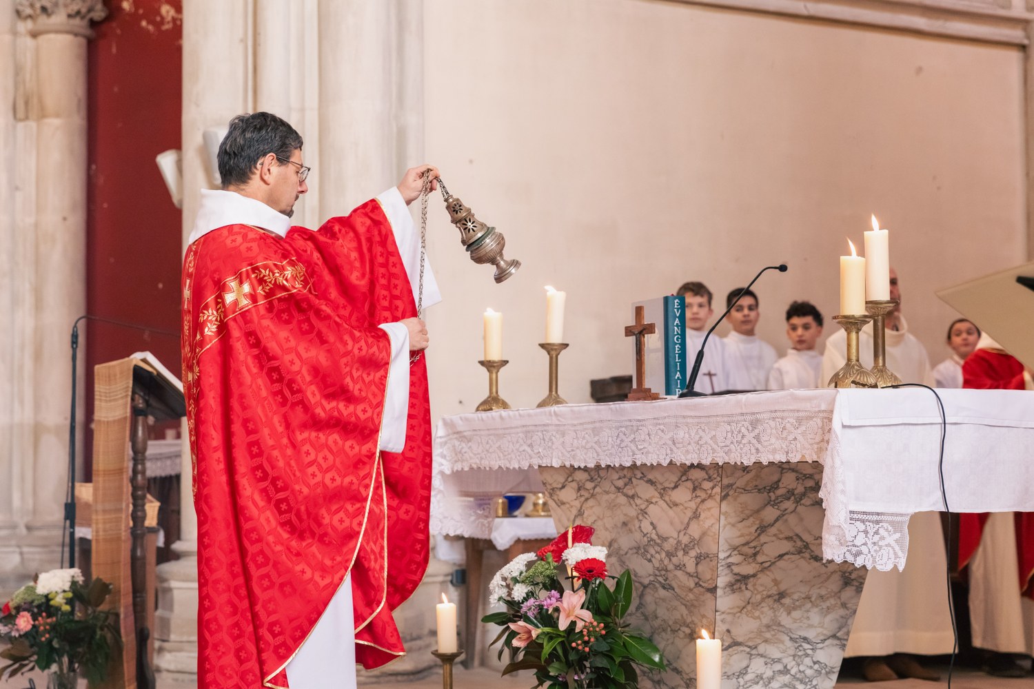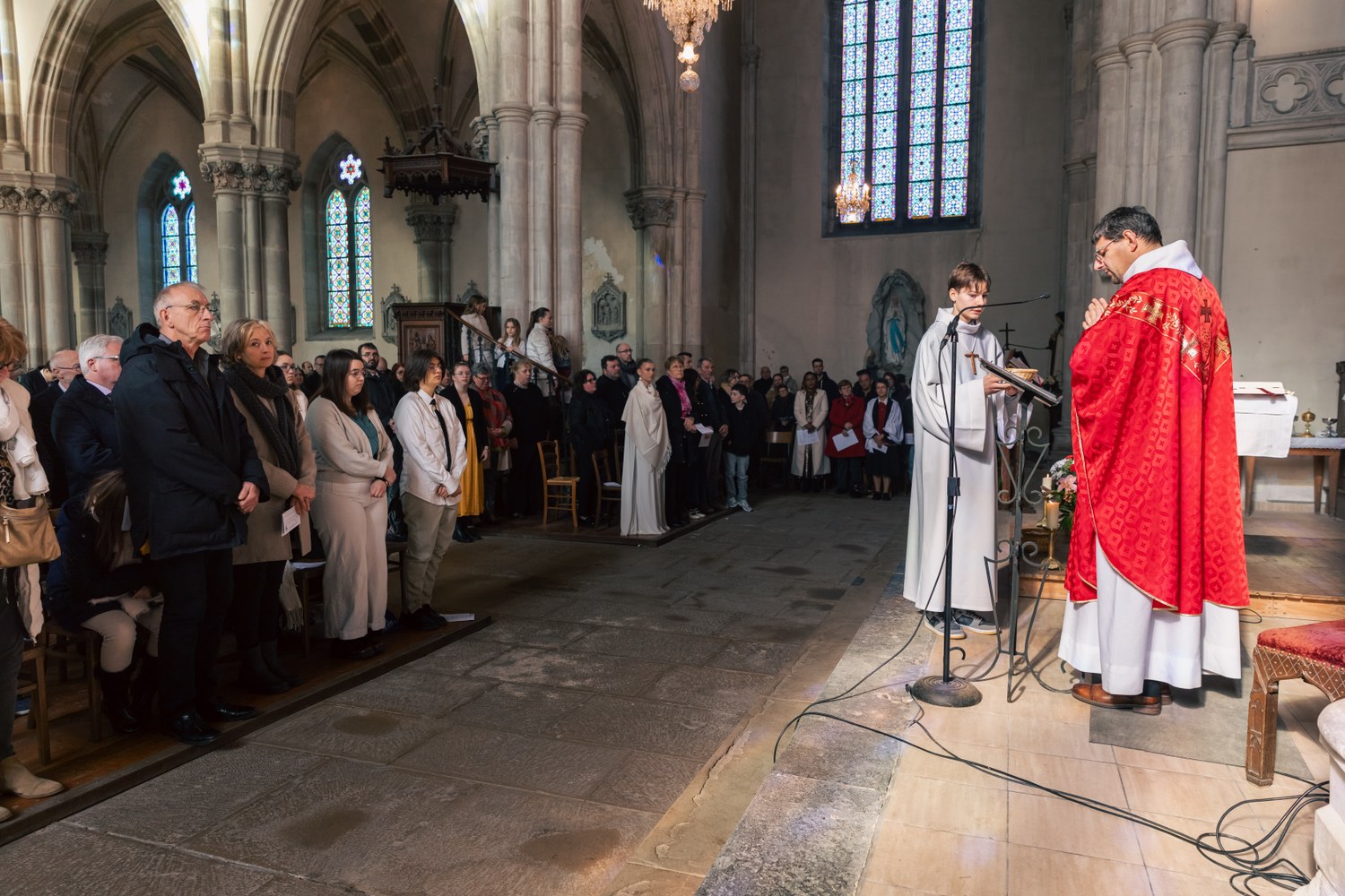 La messe, présidée par le Vicaire Général, Christophe Bazin, accompagné de l’abbé Franck RUFFIOT, doyen, l’abbé Jean-Marie LARUE, André BRUNNER diacre permanent sur la paroisse du Pays Riolais et de Julien DUSSAUCY acolyte. L’animation musicale était assurée par le groupe EFYS, apportant à la liturgie dynamisme et recueillement. (Sarah Cattin - photos Léonie Allard)