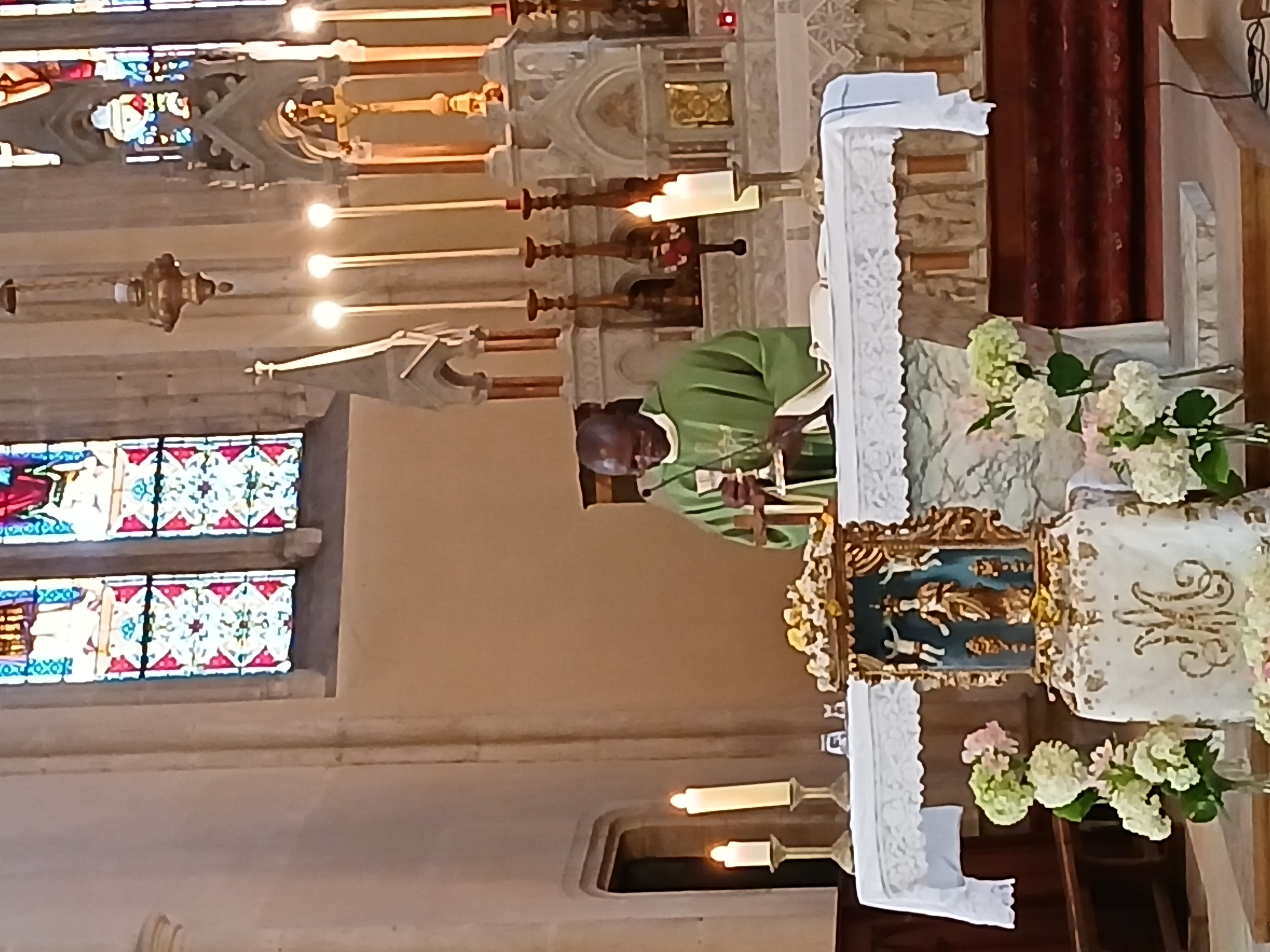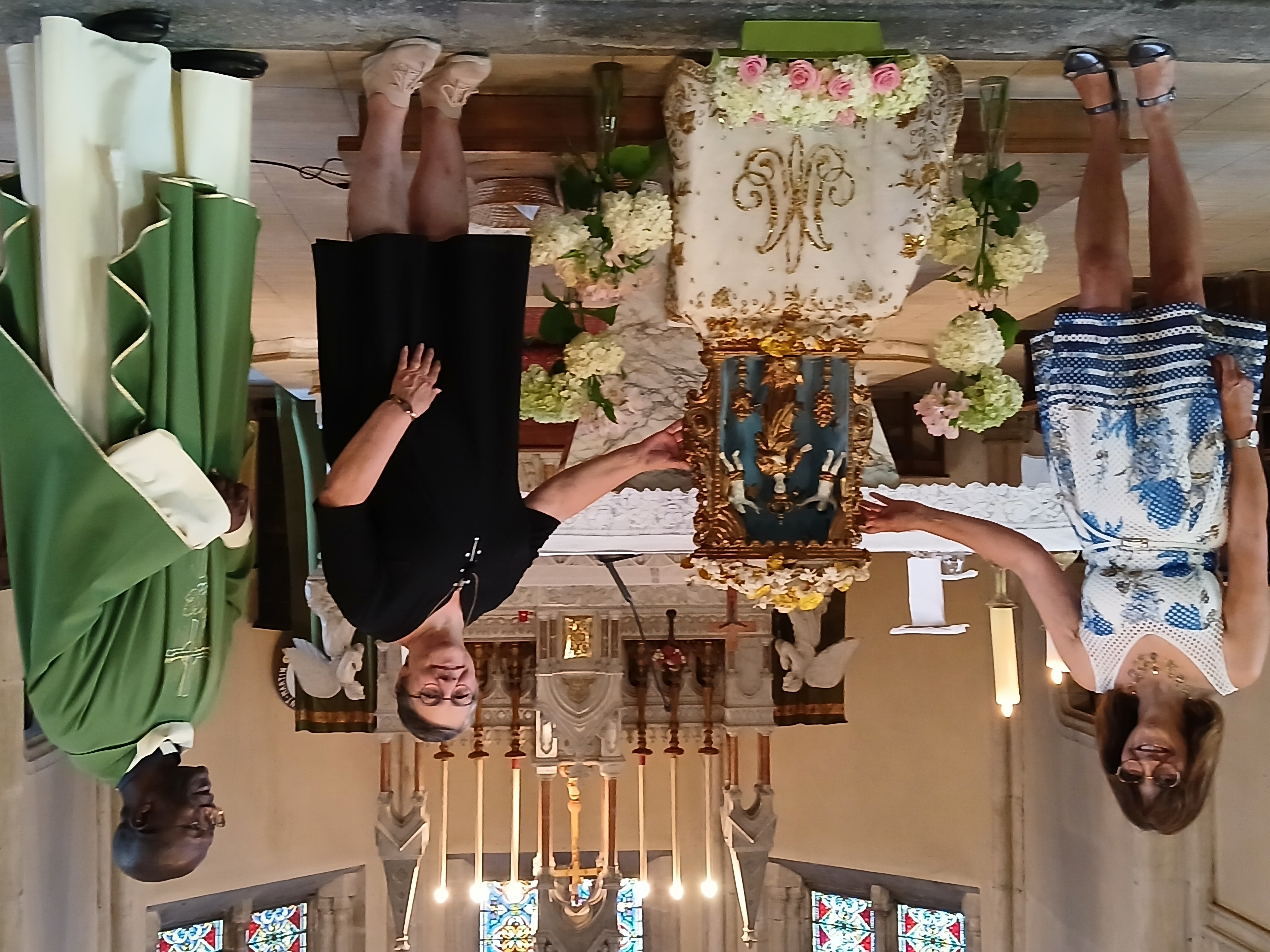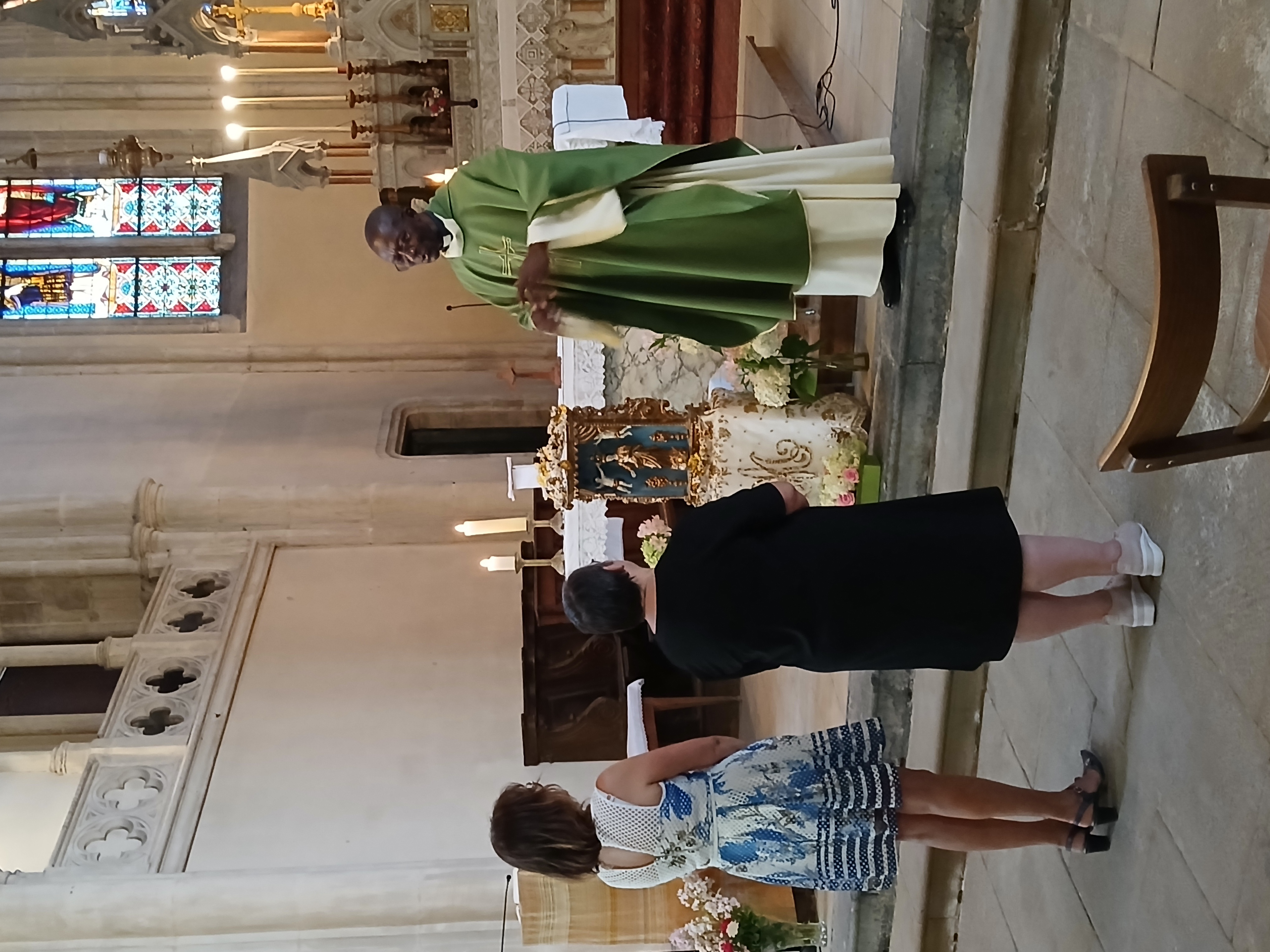 Une belle coutume se perpétue d’année en année dans le village de Saulx. Samedi 5 juillet, lors de la messe anticipée du dimanche, Pascale et Gérard Daval ont transmis à Chantal Virot la belle statue de la Vierge Marie. Cette pièce du patrimoine local a été rénovée ces années dernières par des habitants de la commune. Le Père André-Marie Yamenji qui présidait l’eucharistie était manifestement heureux de présenter l’événement religieux.