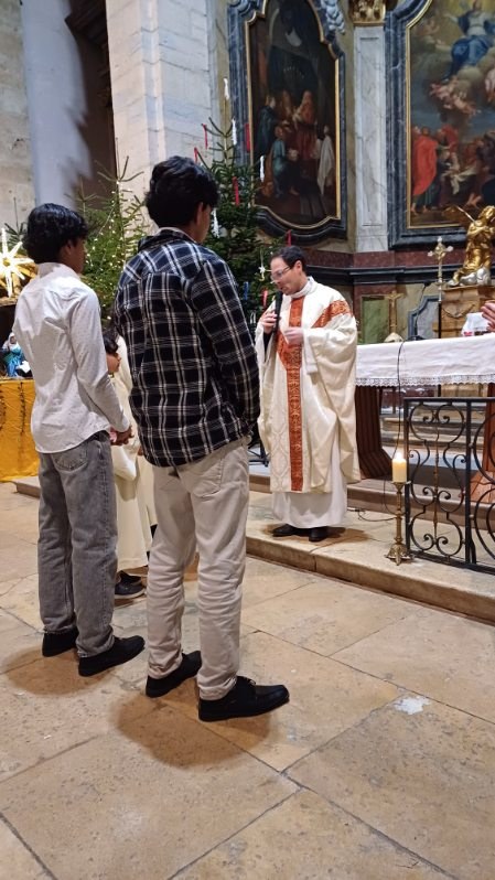 Après avoir marché en famille sur les chemins de Saint-Jacques cet été, les deux frères ont adressé leur demande à notre archevêque. La porte des sacrements est toujours ouverte à ceux qui y sont dûment préparés et disposés. Ainsi Mgr Bouilleret a donné au vicaire épiscopal pour la Haute-Saône la faculté d’administrer la confirmation à Emmanuel et Edwin.