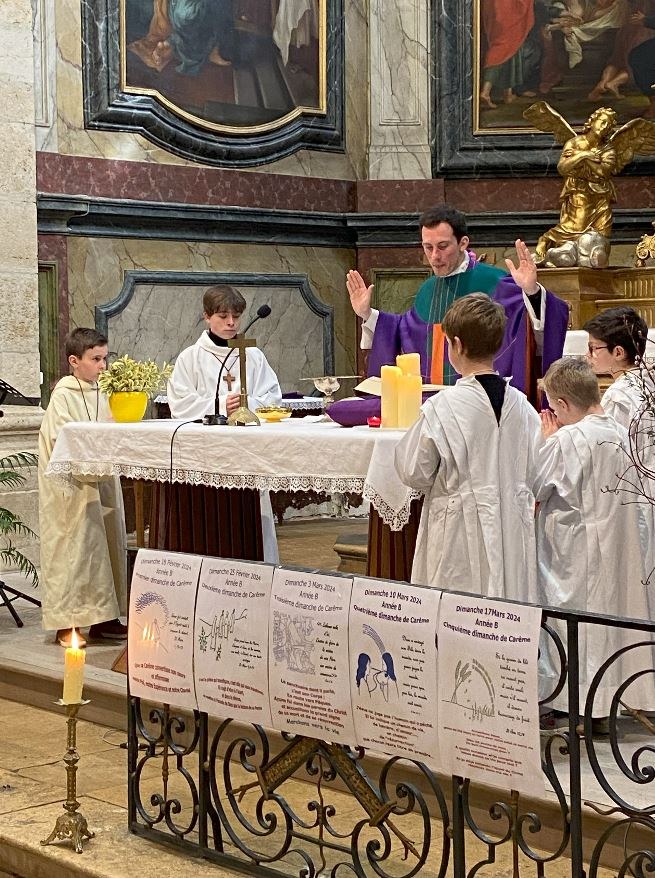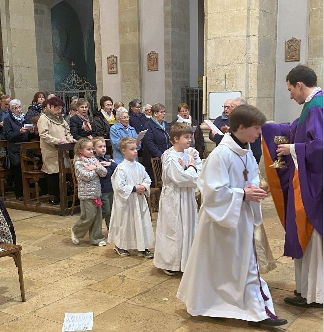 Merci à tous les enfants qui ont participé activement à la rencontre et à la messe de ce jour ainsi qu’à leurs parents, et à vous tous, qui avez fait que notre célébration du 5ème dimanche de carême soit belle.