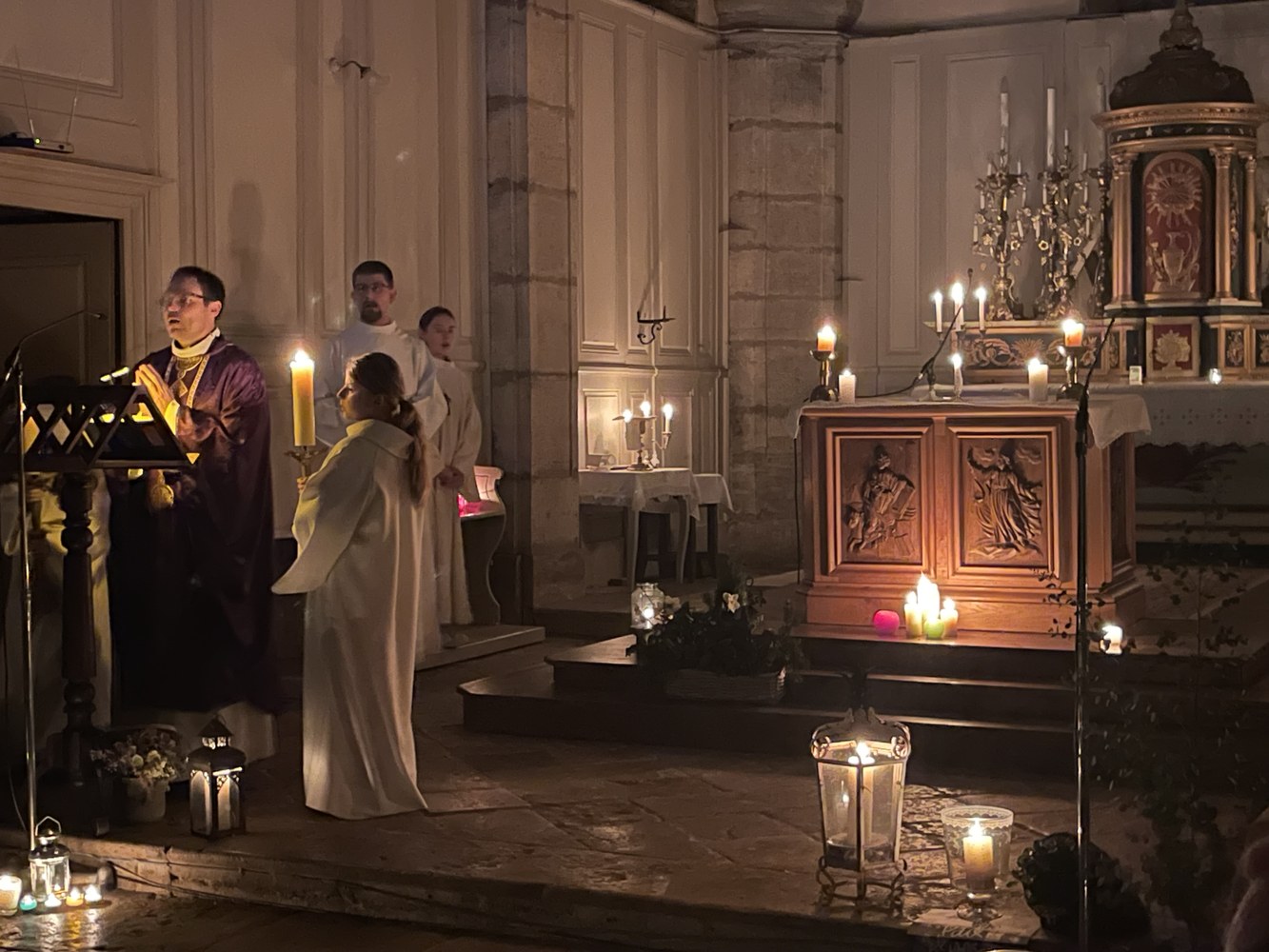 Avec pour seules lumières celles des bougies, cette liturgie fait de chaque fidèle un guetteur d’aurore qui attend dans l’espérance l’événement de Noël, l’avènement du Christ.