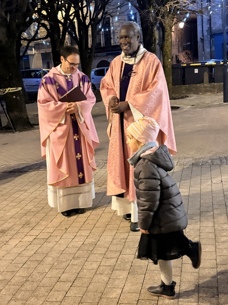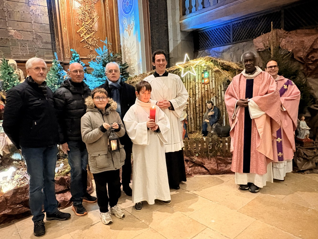 Dimanche 14 décembre à 19h30, l'abbé Jean-Bosco, entouré des abbés Franck et Emmanuel, a bénit les crèches installées à l'extérieur (crèche lumière) et à l'intérieur de l'église Saint-Georges.