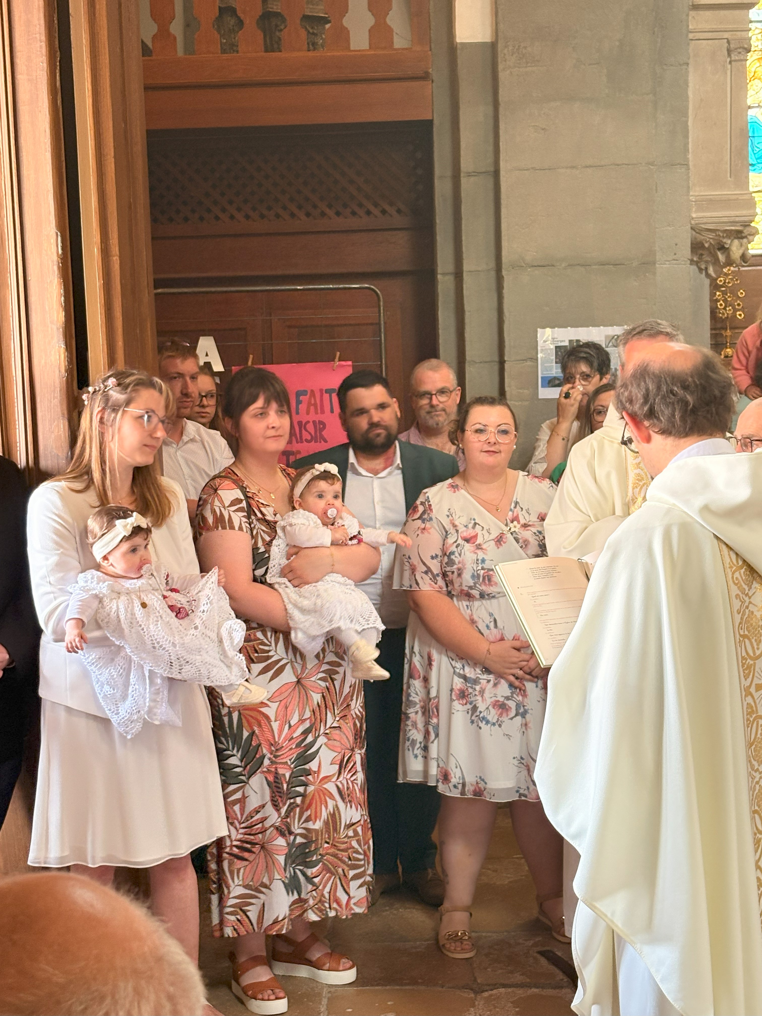 Nous avions également la joie d’accueillir les parents, parrains, marraines de Manon et Margaux qui allaient être baptisées au cours de la célébration eucharistique présidée par l’abbé Jean-Marie Larue et concélébrée par l’abbé Pierre Adrien.
