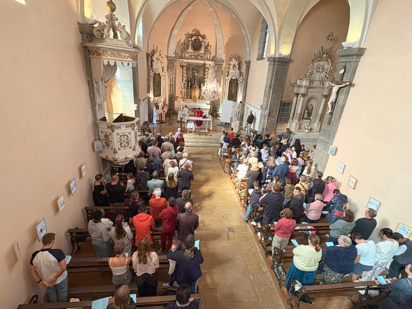 C'était la messe de rentrée pour les enfants de la catéchèse et leurs familles ; Beaucoup avaient répondu à l'invitation de venir rencontrer Jésus. Le chant "Laisse-moi de parler de Jésus" ouvrait la célébration dans la joie.