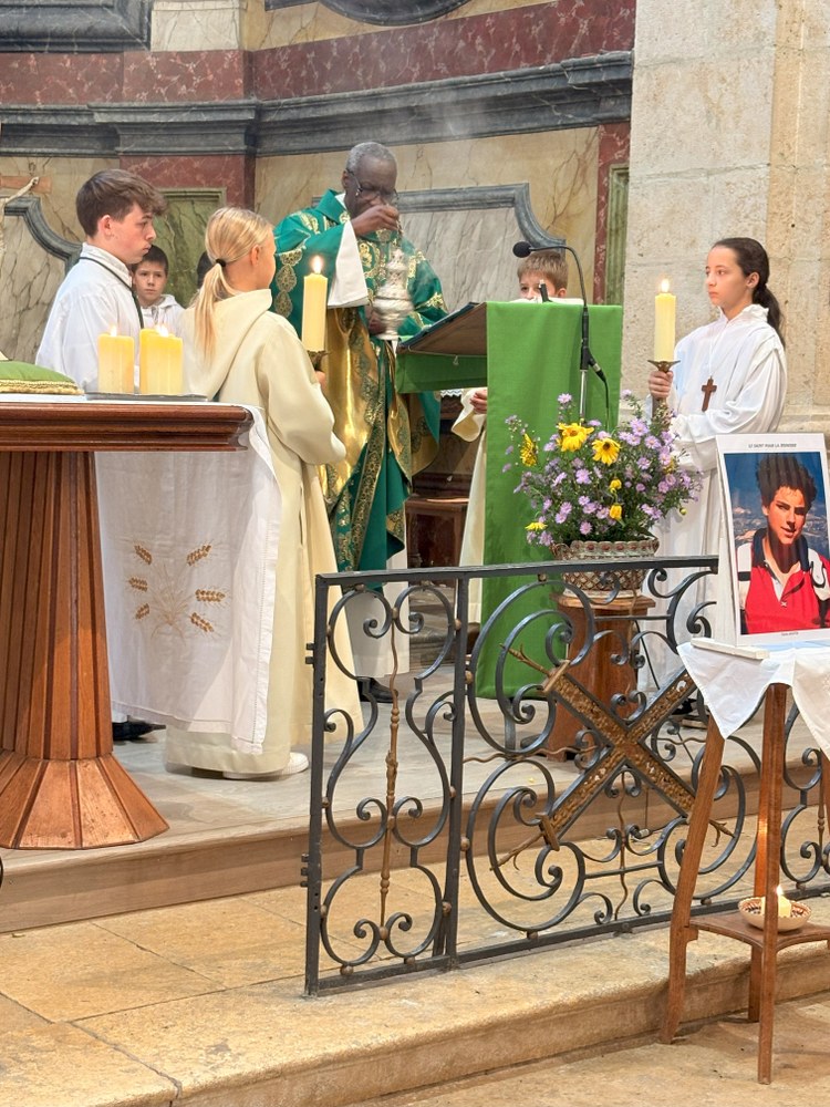 Ce fut, pour les enfants, l'occasion de découvrir saint Carlo Acutis, canonisé par le Pape Léon XIV le 7 septembre dernier. Dans son homélie, l'abbé Jean-Bosco a invité les enfants, les jeunes et les moins jeunes, à suivre les pas de saint Carlo ;