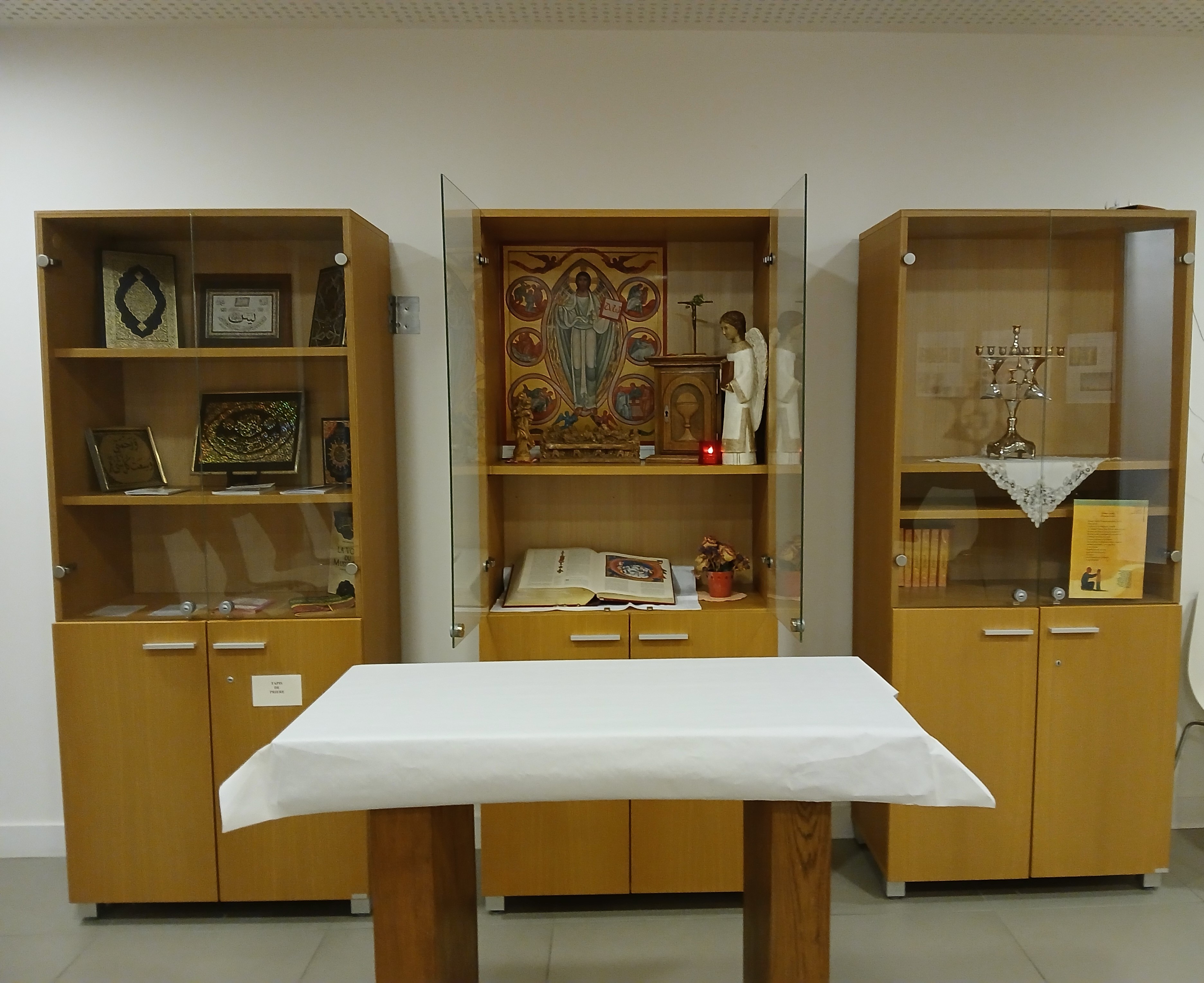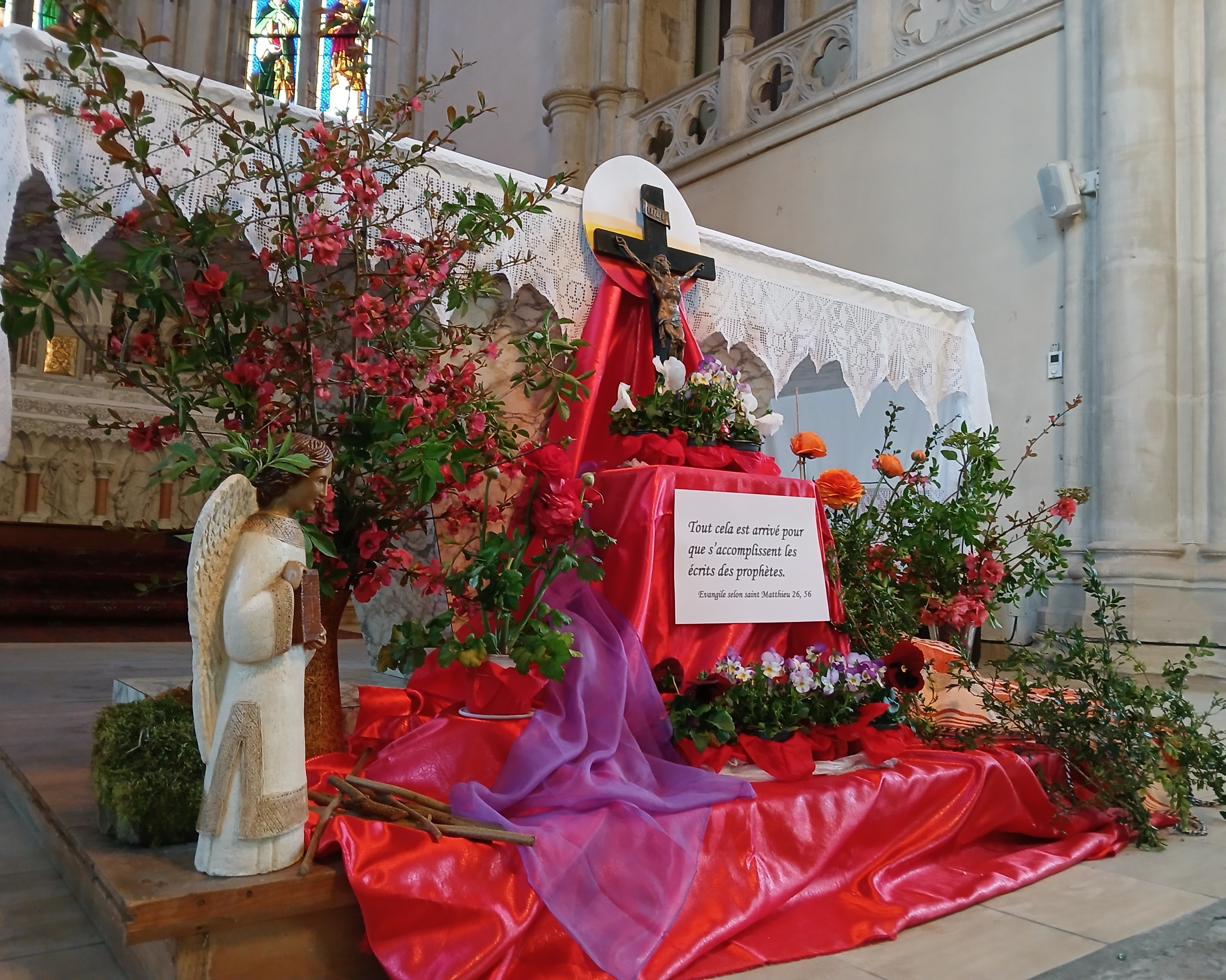 Le 1er avril, il a fait halte au lieu de recueillement multiconfessionnel lors de la célébration de la Parole, trait d’union discret entre la paroisse et l’aumônerie. Patients, aumônier, bénévoles et personnes de passage ont constitué une assemblée modeste mais désireuse d’accueillir le Christ, sa vie donnée. Une cuvette et deux serviettes, objets du quotidien hospitalier déposés au pied de l’autel rappellent le lien indissociable entre l’eucharistie et le service des frères.