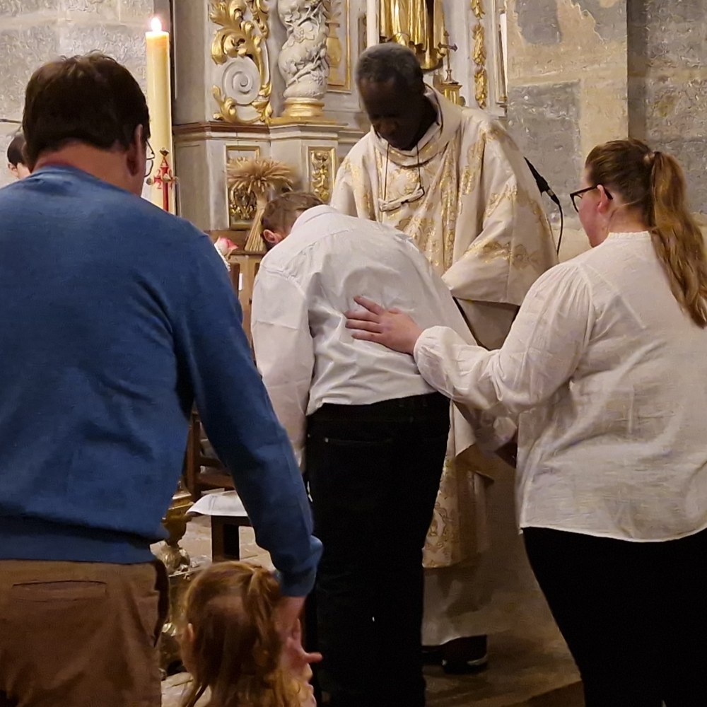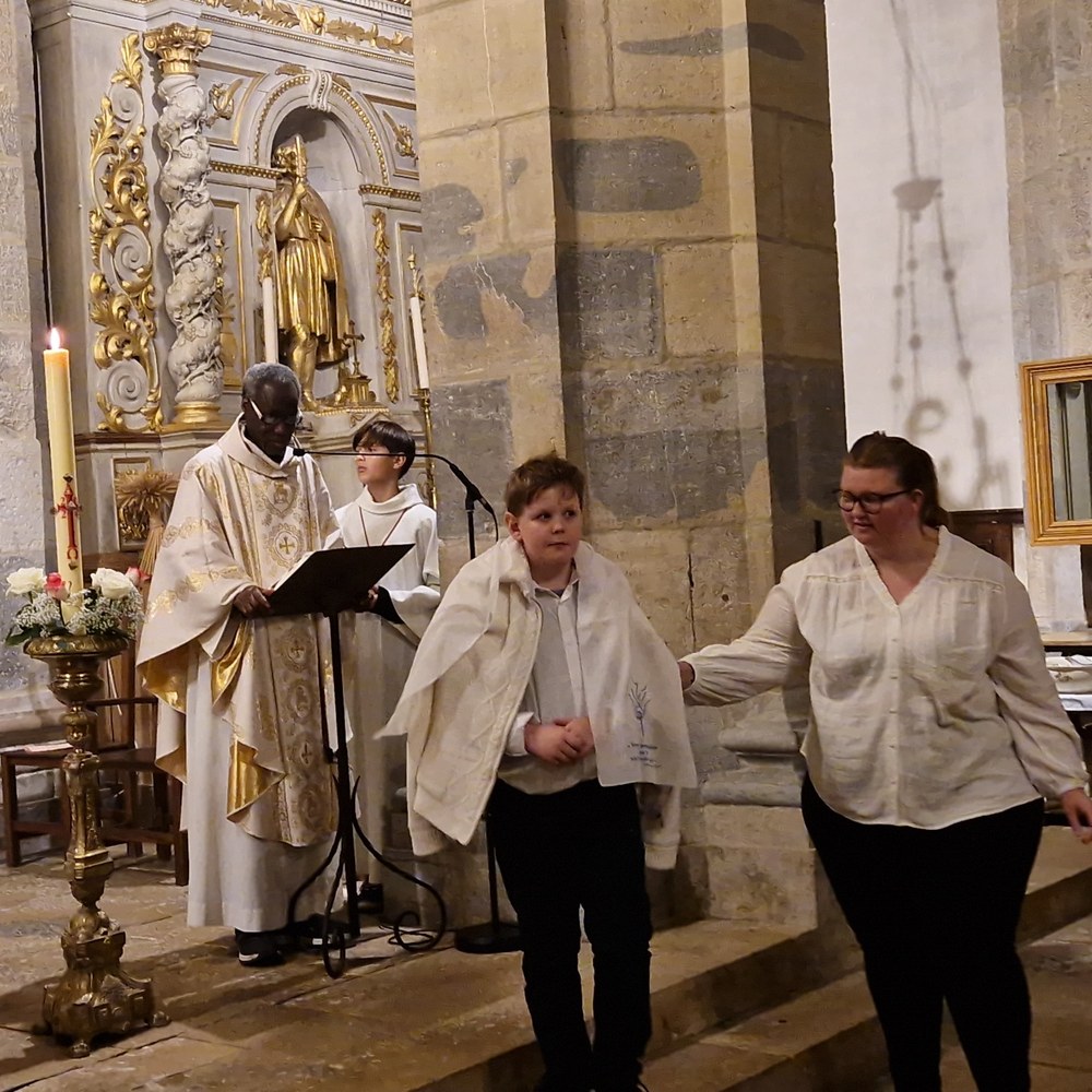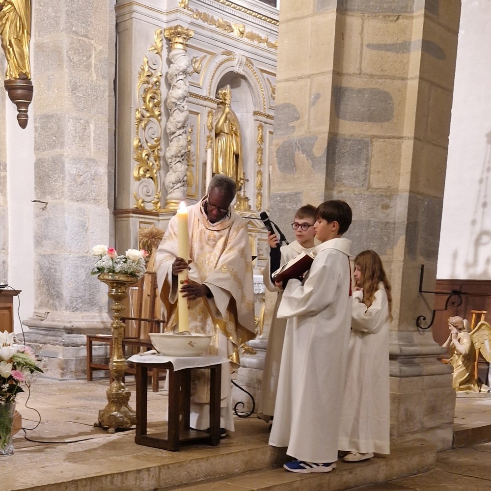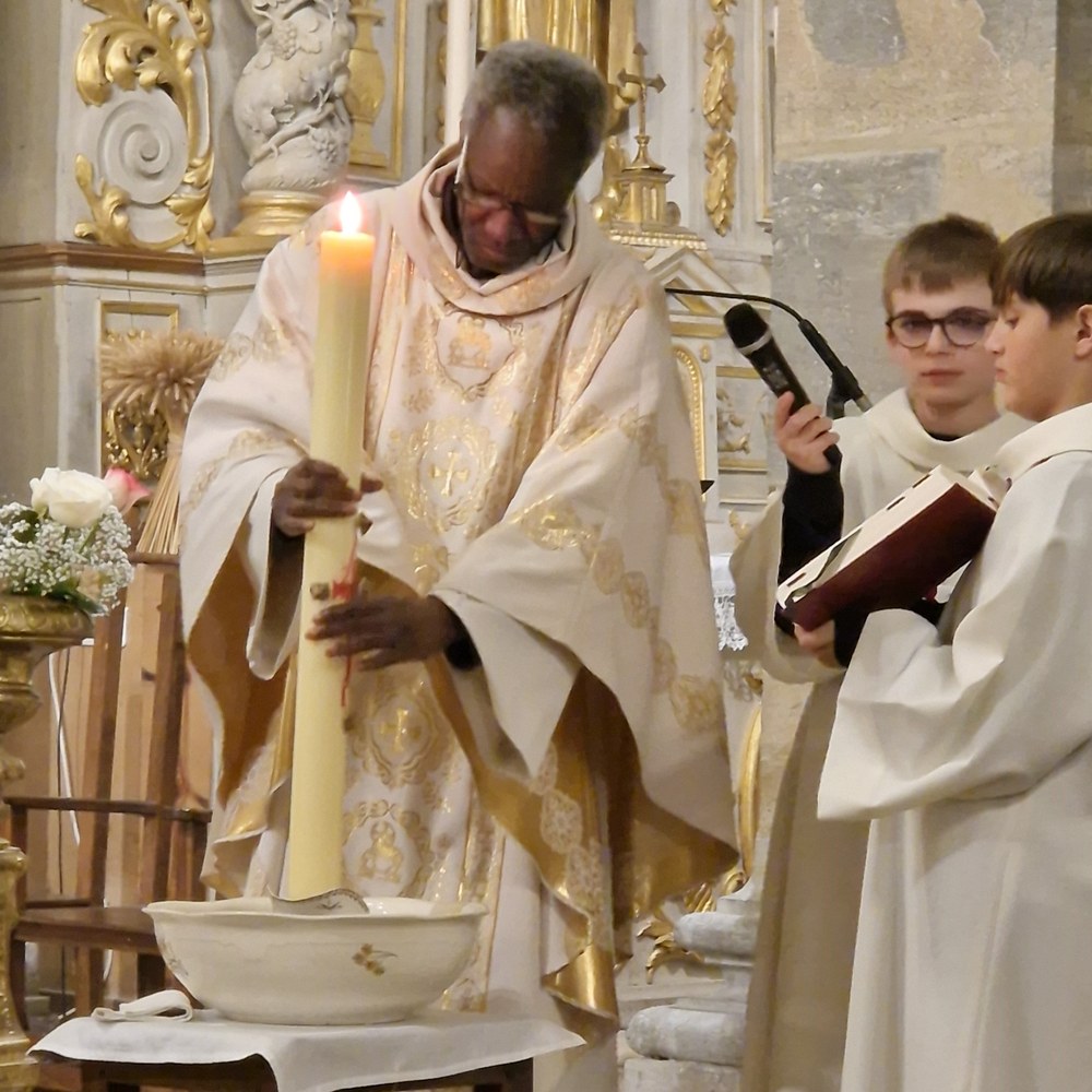 Veillée Pascale présidée par l'abbé Jean-Bosco DAO, en l'église de Mailley. Au terme d’un chemin catéchuménal, Cyril a reçu le sacrement du baptême.