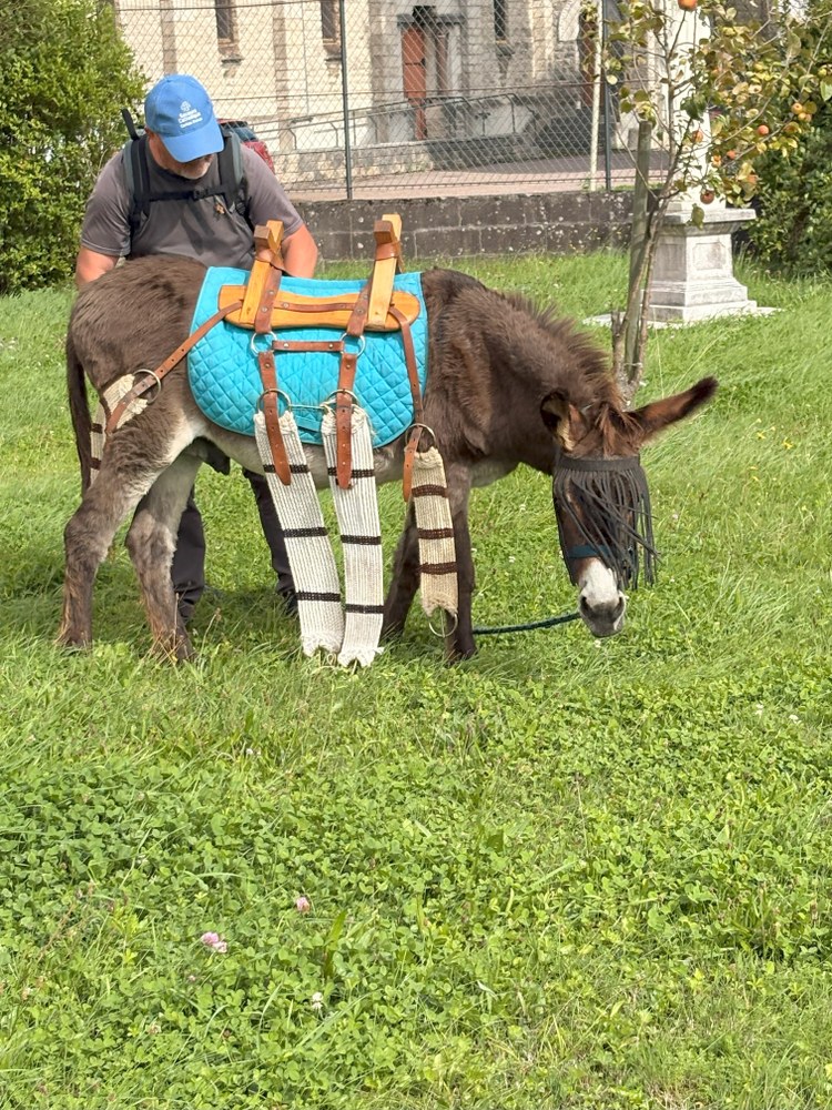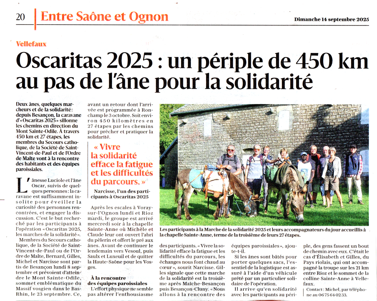 Partis de Besançon le 8 septembre, Bernard, Gilles, Michel et Narcisse, l'ânesse Luciole et l'âne Oscar ont fait escale mercredi à la chapelle Sainte-Anne à Vellefaux et jeudi au Sacré-Coeur à Vesoul.