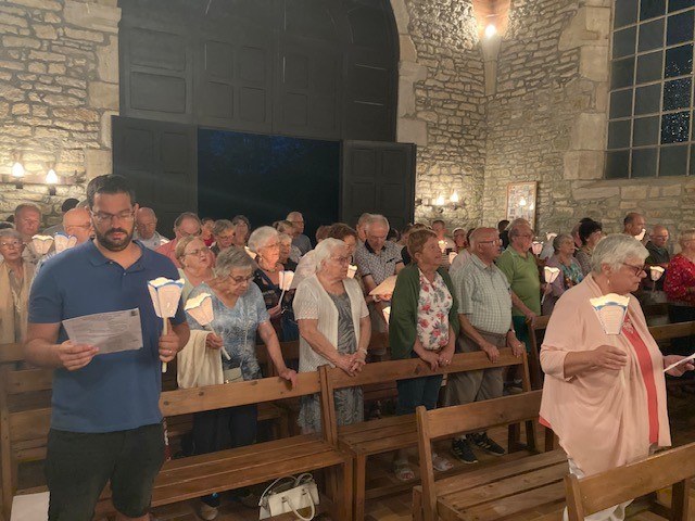 Départ de la procession mariale sur le parking pour rejoindre la chapelle.