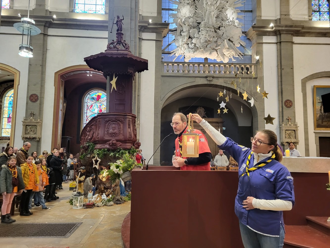 La lumière de la Paix de Bethléem est un évènement scout chrétien (œcuménique) qui se déroule chaque année pendant la période de l’Avent et jusqu’au 2 février 2025. Habituellement allumée dans la grotte de la nativité à Bethléem, la lumière est rapportée à Vienne en Autriche, puis transmise partout en Europe.