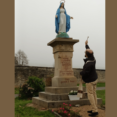 En ce dimanche 9 novembre 2025, l’abbé Jean-Marie Larue, entouré de ses paroissiens est venu bénir la statue de la Vierge récemment restaurée. Cet été, des bénévoles ont pris en charge la restauration de la statue de la Vierge qui jouxte le cimetière de Mailley-Chazelot : celle-ci est en fonte aciérée, d’une hauteur d’1,50m pour un poids de 300kg. Retour en images sur le travail de restauration et la bénédiction (© Marie-Agnès D. et Marie-Luce T.)