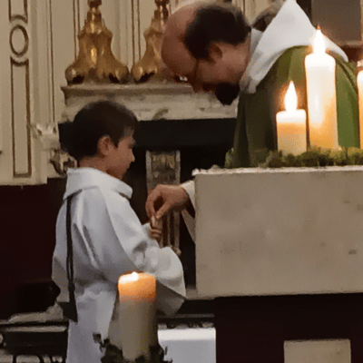 Belle transmission de la statue du saint Ange ce dimanche 14 décembre en l'église Saint-Georges de Vesoul. C'est à la fin de la messe présidée par l'abbé Emmanuel que Henriette et Bernard ont transmis le saint Ange à Hélène et François Mercier accompagnés de leurs deux garçons.