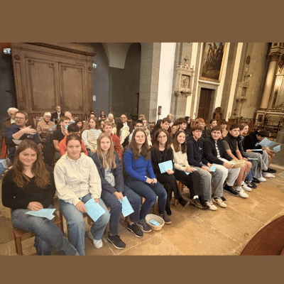 Les enfants de la catéchèse, accompagnés de leurs catéchistes et de leurs parents, faisaient leur rentrée le dimanche 28 septembre au cours de la messe dominicale en l'église de Scey-sur-Saône. C'était aussi la rentrée pour les servants d'autel. Deux familles ont également présentés leurs bébés à la communauté afin qu'ils reçoivent le baptême qui fut célébré au cours de la célébration. Ce fut, pour les enfants, l'occasion de découvrir saint Carlo Acutis, canonisé par le Pape Léon XIV le 7 septembre dernier. Dans son homélie, l'abbé Jean-Bosco a invité les enfants, les jeunes et les moins jeunes, à suivre les pas de saint Carlo ; Avant la bénédiction solennelle et le chant d'envoi, l'abbé a béni les cartables des enfants.