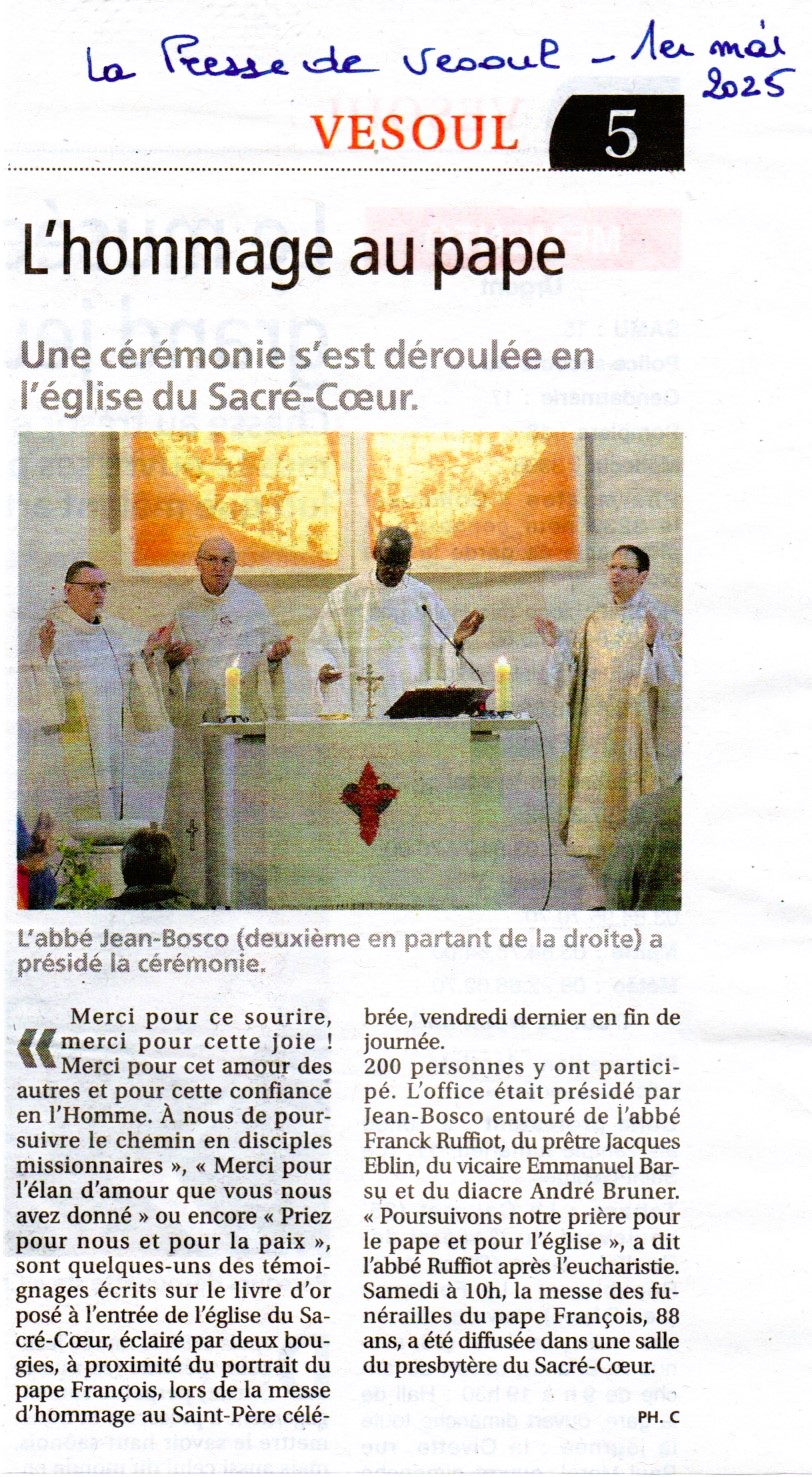 "Merci pour ce sourire, merci pour cette joie... tel est le début de l'article paru dans la Presse de Vesoul de ce jeudi 1er mai.