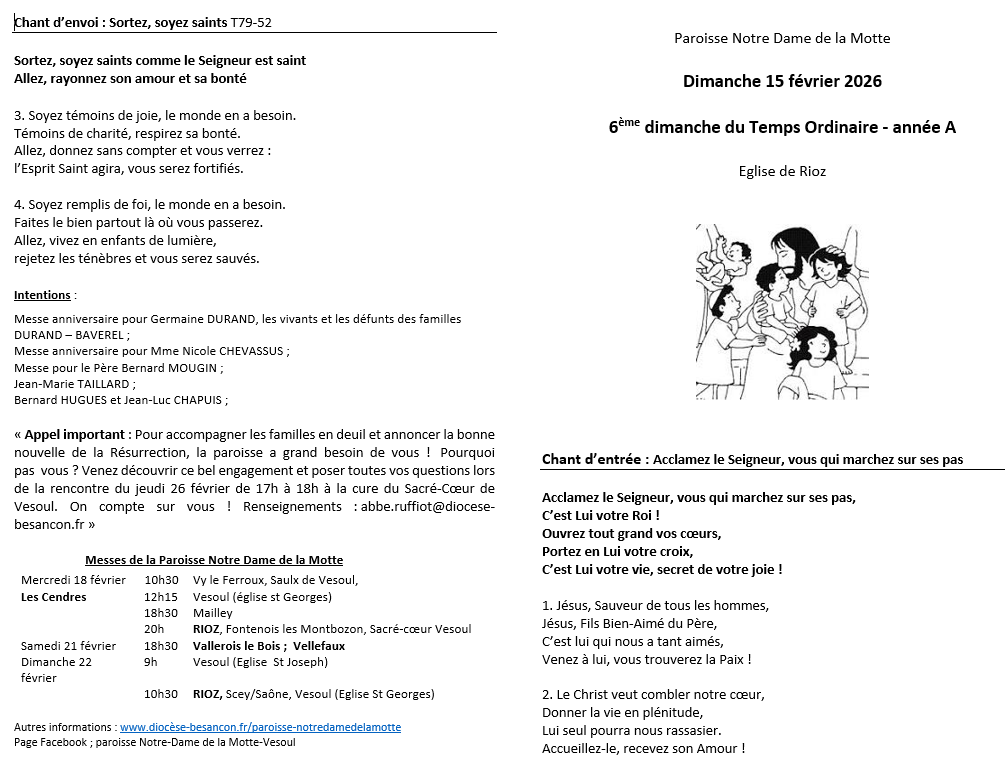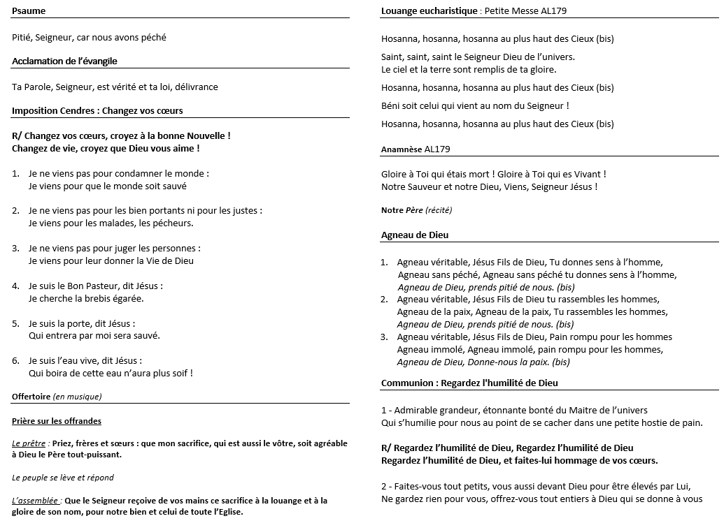 RIOZ : Feuille d'assemblée, dimanche 15 février & Cendres Cliquez sur les images pour les agrandir et/ou les télécharger Messe des Cendres