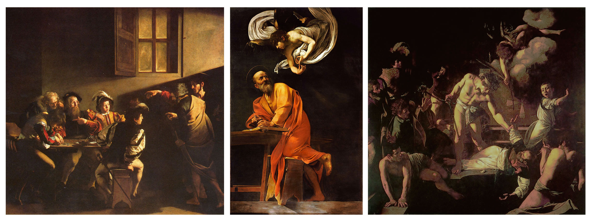 « La vocation de Saint Matthieu » peinte par le Caravage entre 1599 et 1600, répond à une commande du cardinal Del Monte. Cette œuvre particulièrement célèbre, fait partie d’un cycle de trois tableaux situés dans la chapelle Contarelli, dans l’église Saint Louis-des-Français à Rome.