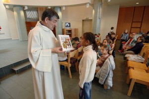 Les enfants peuvent étudier un texte d’Évangile et l’illustrer, par exemple, ou bien regarder un DVD, découvrir un épisode de la Bible par le jeu ou le mime, aller voir une exposition, visiter une église, ou découvrir ensemble l’histoire de la vie d’un saint.
