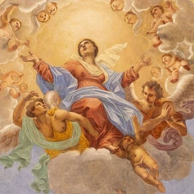 Pourtant, « assomption » ne vient pas du verbe latin « ascendere » (monter, s’élever), qui a donné « Ascension », mais d’« assumere » (assumer, enlever). L’étymologie souligne l’initiative divine : Marie ne s’élève pas toute seule vers le ciel, c’est Dieu qui fait le choix de l’« assumer », corps et âme, en la réunissant à son Fils sans attendre la résurrection finale, tant elle a su s’unir, corps et âme, à Lui dès sa vie terrestre.