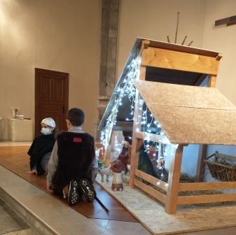 Belle participation des enfants à la messe de la veillée de Noël, célébrée par le père Etienne Fetel.