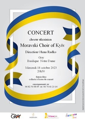 MERCREDI 18 OCTOBRE - 20H30 - CONCERT À LA BASILIQUE - MORAVSKI CHOIR OF KIEV Quand le 18/10/2023 de 20h30 à 22h00 Où Basilique de Gray Ajouter l'événement au calendrier vCal iCal Morovski Choir of Kiev à 20h30 à la basilique de Gray En savoir plus