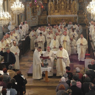 Cette messe chrismale n'a pas pu être célébrée pendant la Semaine Sainte à cause du confinement dû à la crise sanitaire. En savoir plus : ici