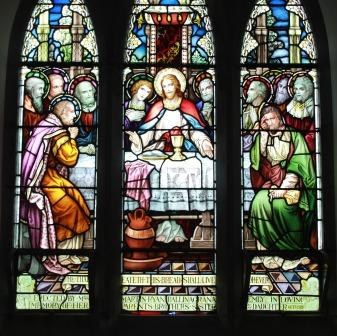 Jésus prend son dernier repas avec les douze Apôtres dans la salle dite du “Cénacle”. Saint Paul et les évangélistes Marc, Luc et Matthieu rapportent les récits de la Cène au cours de laquelle, en prenant le pain et le vin, le Christ rend grâce et offre son Corps et son Sang pour le salut des hommes.
