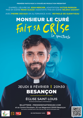 Après le succès du livre, l'œuvre de Jean Mercier arrive sur scène grâce à l’adaptation de Victor Pierson et une mise en scène de Mehdi Djaadi. Le «seul en scène» se jouera le jeudi 8 Février à 20h30 à Besançon, à l‘église Saint-Louis, 28 avenue de Montrapon.