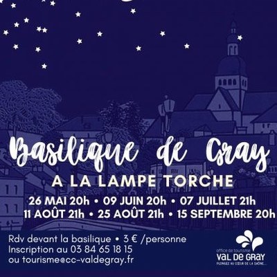 Visite de la basilique à la lampe torche Quand le 07/07/2023 de 21h00 à 22h00 Où Basilique de Gray Ajouter l'événement au calendrier vCal iCal En savoir plus