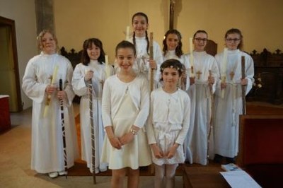 Profession de Foi à l’église d’Arc-lès-Gray pour six jeunes filles et Première Communion pour les petites soeurs de deux d’entre elles.