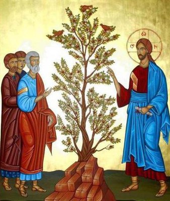 Il disait encore : « À quoi allons-nous comparer le règne de Dieu ? Par quelle parabole pouvons-nous le représenter ? Il est comme une graine de moutarde : quand on la sème en terre, elle est la plus petite de toutes les semences. Mais quand on l’a semée, elle grandit et dépasse toutes les plantes potagères ; et elle étend de longues branches, si bien que les oiseaux du ciel peuvent faire leur nid à son ombre. »