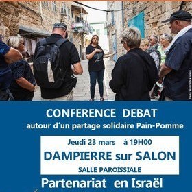 Soirée carême pour tout le doyenné à Dampierre-sur-Salon à salle paroissiale le 23 mars à 19h00 en lien avec la partenaire palestinienne qui oeuvre pour le rapprochement entre israéliens et palestiniens Repas sobre pain pomme apporté par les organisateurs.
