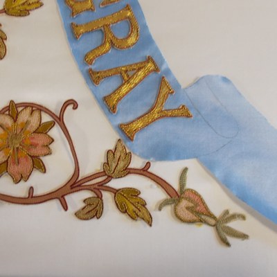Publié le 15/08/2020Voilà 2 ans, nous avons décidé de faire procéder à la remise en état des 2 bannières offertes à Notre‑Dame de Gray, l’une par la paroisse, l’autre par la Ville de Gray à la fin du XIXème siècle. Elles ont subi l’usure du temps ; les tissus étant déchirés et brûlés. Il n’était alors plus possible de les utiliser lors des processions.