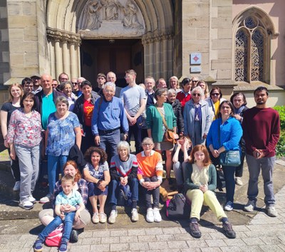 Les pélerins du Doyenné de la Plaine de Gray devant la basilique de Mattaincourt