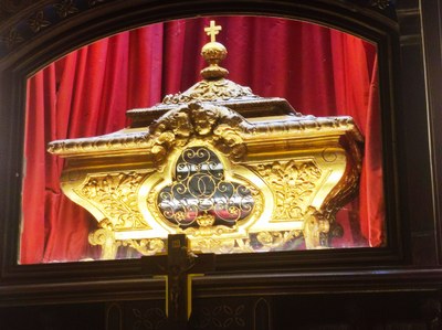 Le reliquaire au sein de la basilique de Mattaincourt qui recèle les ossements de saint Pierre Fourier