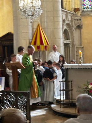 Le dimanche 7 septembre a eu lieu la rentrée du catéchisme, ainsi que la messe des familles. Au cours de la célébration, l'abbé Pierre Bergier a procédé à la bénédiction des cartables