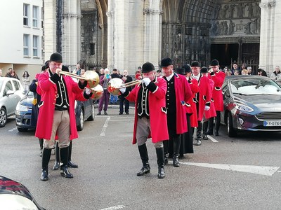 Retour en photos sur la prestation des "Trompes du Val de Saône" lors de la célébration du 9 novembre et devant la basilique après la célébration.