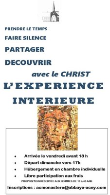 Du vendredi 22 juillet au dimanche 24 juillet 2022 se déroulera un week-end de découverte de la vie monastique à l'abbaye d'Acey, s'adressant à des hommes de 18 à 40 ans.