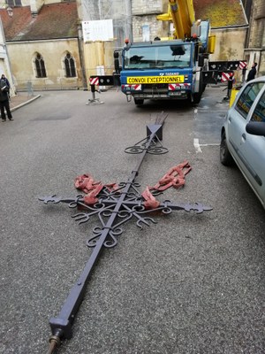 Enlèvement de la croix et du coq, montage de l'échafaudage, visite au plus près des travaux sur l'échafaudage, bénédiction de la croix et du coq avant réinstallation, etc. Pour revivre ces différentes étapes :
