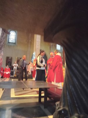 Ils sont tous les deux auprès des évêques qui les confirment lui : François Weirauch à gauche, Sylvie Varey à droite.