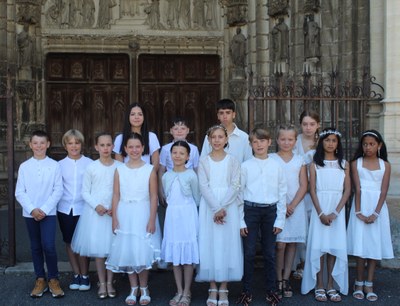 Soline AUBRY, Cléophas BRYON, Julian COLLINET, Léopoldine DELAMOTTE, Anaé DELAS FELICITE, Enéa DELAS FELICITE, Constant GRANCHAM, Hugo LALIGANT, Léna LALIGANT GOMES, Cloé MARCAIRE, Flavie MOREL, Luana PINHEIRO, Lucie REVOY ont fait leur communion le dimanche 22 juin à la basilique Notre-Dame de Gray.